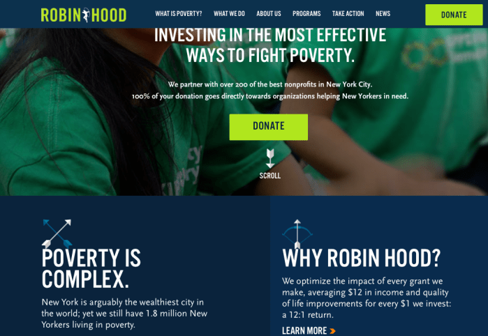Robin Hood Fndtn home page. NO links on dropdown menus lead to any financial statements, let alone tax returns…