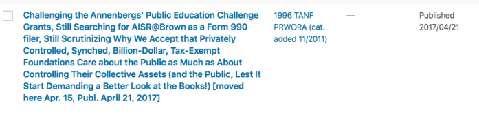 Six Posts (at least) in the Pipeline Pre-Thanksgiving 2017, Yet I See I’d Outlined the Same Basics One Year Ago (Nov. 2016) [Published 11/21/2017]. » Annenberg posts (per FamilyCourtMatters’org’s WP Admin Screenshots, all in 2017) (Sshot 2017Nov21 Tue@4.59.44 PM