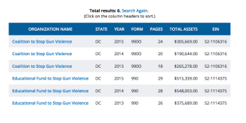 CSGV is the 501©4 (not that large) and EFSGV the 501©3, both in Washington, D.C., and from (per website and Forms 990 viewed) 1974, 1978, respectively. Neither is that heavily funded, but what I object to is declaration at the bottom of ‘NRA on the Record” website that it’s not affiliated with any organization, when it clearly is — as the 501©3/(c)4 combo.