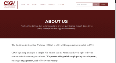 (The (501©4’s) CSGV website features blood-red banners and footer; even highlighting (selected text) shows up white-on-blood-red theme.)