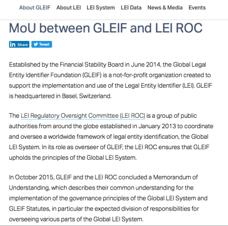#9/11: (image description not in chrono order, caption corrects this): January 2013, LEI ROC (regulatory oversight committee), actually a “group of public authorities from around the globe” is established to oversee Global LEI System. LEI ROC oversees the (Global) LEI system… The FSB establishes GLEIF in June 2014 to support the “implementation and use” of the LEI, HQ Basel, Switzerland, but it seems the LEI ROC oversees the GELIF. Meanwhile…OCT. 2015, there’s a MoU (delegation of responsibilities in the undertaking…)