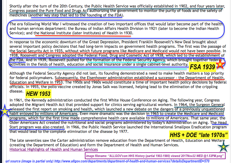 Happening NOW: Locally and Within the USA, Matching Nonprofits to Legal Entities and Tracking Them Remains at Best (for Most) a Messy, Expensive and Unreliable Process, But Internationally — More Streamlined, Monitored, and Standardized for Faster, Easier, and More Profitable Trade. See FSF, FSB (G20-formed, 2009), LEI Legal Entity Identifier [global database + system], GLEIF (Swiss Foundation), LOUs (who issue LEIs) and ‘KYC’ (Know Your Customer) [Publ. Nov. 23, 2017]. » ALLGOV’com HHS History (partial 1902-1980) viewed 2017Nov22 WED @1.53PM