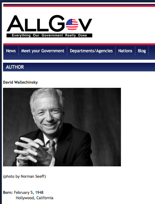 David Wallechensky (b. 1948) creator of “ALLGOV.com” a website (like Online Etymology Dictionary) I tend to reference in this blog)