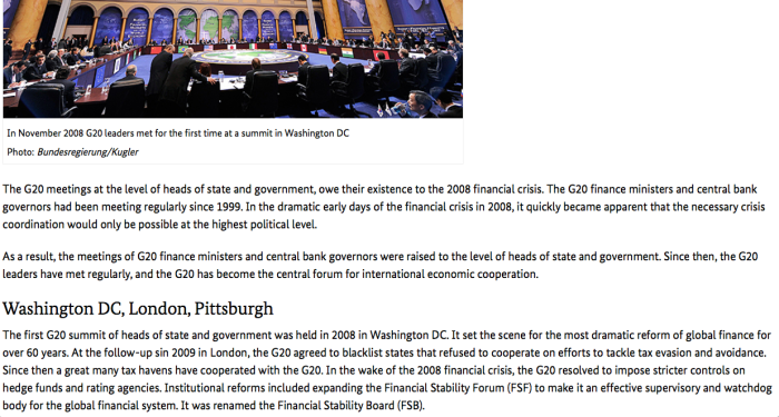 This time, Click IMAGE to access website. (G20.org describing role of 2008 crisis in elevating participation to the “heads of state” from central bank leaders, etc.