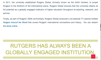 Rutgers Global—formerly known as the Rutgers Centers for Global Advancement and International Affairs (GAIA Centers)—is your destination for the tools and resources you need to advance your global or international experience at Rutgers.” [viewed Nov. 24, 2017]