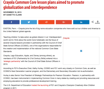 Posted Nov. 2013 at EAGNews (where “EAG” – Educational Action Group, which (looked up) is a MI-based, small, 2007ff 501©3 and ©4 nonprofit combo. However, the article points out where the software companies (incl. Bill Gates’ Microsoft) stands to profit in the standardization. It also is where I got the “P21.com” reference and decided to include in this post. CLICK HERE FOR the SHORT ARTICLE