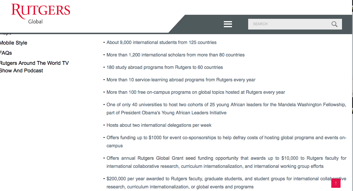 Global.Rutgers.edu sub-menu. Notice the formerly “GAIA” Seed grants near the bottom. (https://global.rutgers.edu/global-programs-opportunities/funding-opportunities/gaia-grants