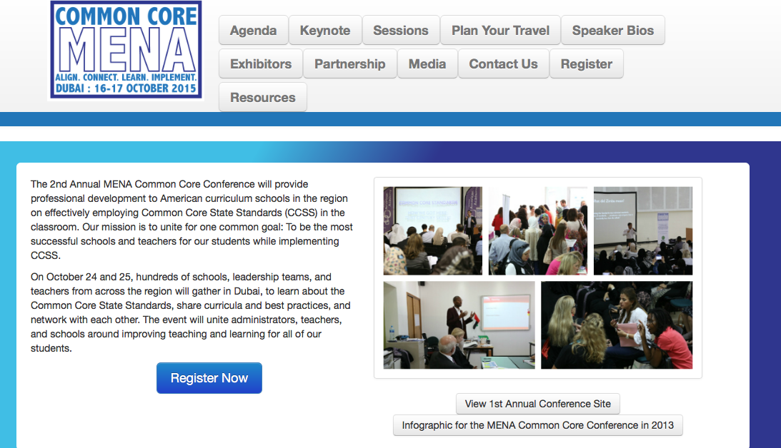 MENA = Middle East North Africa. This Oct. 2015 conference in Dubai was directed at American Curriculum Schools and apparently organized by a Dubai-based company “KDSL” (Know Do See Learn USA is the underlying company). Co-Founder (2007) of KDSL’s academic background (per company website labeled ” ©2010 on footer): He holds a Bachelor of Arts degree in Education and a Master of Education degree in Curriculum and Teaching from Michigan State University (USA). Currently, he is a member of the Association for the Advancement of International Education (AAIE) and studying in their Institute for International School Leadership