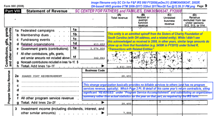 Image #3 of 3 for: SC Ctr for Fathers & Families IRS 990 FY2008 (yeDec31) (EIN#364506347, 2002ff) Pt. VIII, Revenues (notice few are in Line 2, as contrasted with statements on pg2 of the same return)
