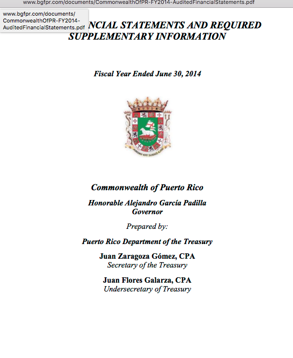Combined audited FS & Req’d Supplementary Info for the Commonwealth of PR FY2014, (predates “PROMESA” and FAFAA)