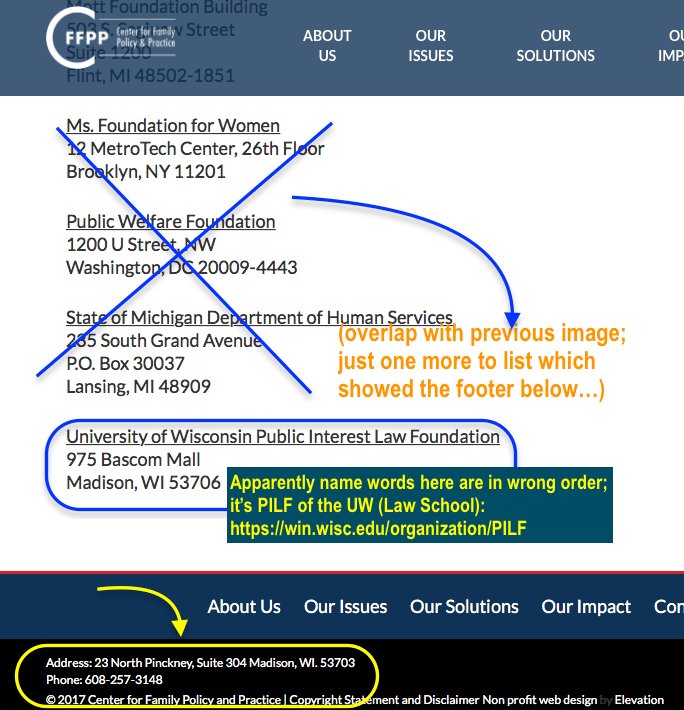 CFFP Funders, May 22 2017 (Image #4 of 4 … FYI link to this one (UW PILF) reads “no longer hosted.” I didn’t find an EIN# and waht does exist elsewhere seems to be “log-in” need-to-know based, although plenty of other law schools (Columbia, Hastings, Loyola, UCLA, Stanford, Rutgers) seem to have similarly-named foundations, when I searched 990finder. I just didn’t find, oddly, this one…