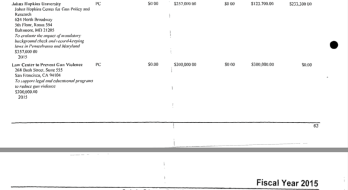 Without discussing “Joyce Foundation” in detail, Form 990PF FY2013, I did see on pp.62-63 (printed on individual grants listing, horizontal pages; may not refer to 990PF page numbering) lists of grants under the category “Gun Violence,” $215K to “The Educational Fund to Stop Gun Violence” in D.C., out of $3.6M allocated that year for this topic. It appears, at least on some of the tax returns I viewed, they are distributing still only about 5% of total of non-exempt-purpose use assets. Page 1 of any 990PF gives a perspective on investment revenues – vs. contribution (and/or operating, administrative) expenses.