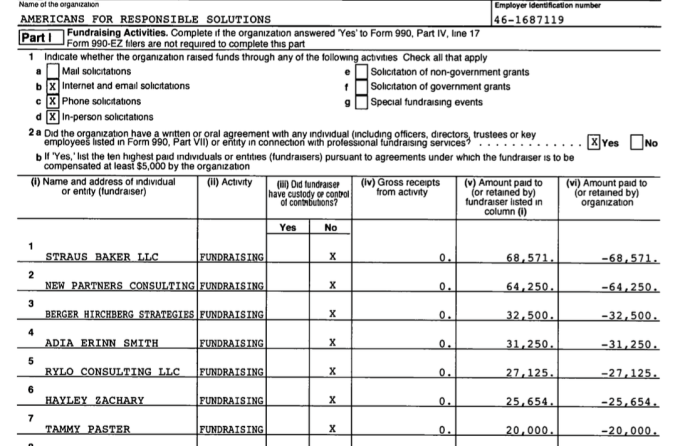 showing (incl. header, but not total — next image handles total and same line-items — Fundraising Expenses for 0 funds raised that year, for ARS (EIN#46-1687119 in 12 images from FY2013**