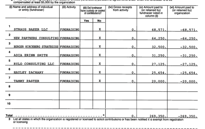 showing (MINUS identifying header, but WITH total — overlaps with prev. image image showing IDENTIFYING HEADER and the same line-items — Fundraising Expenses for 0 funds raised that year, for ARS (EIN#46-1687119 in 12 images from FY2013**