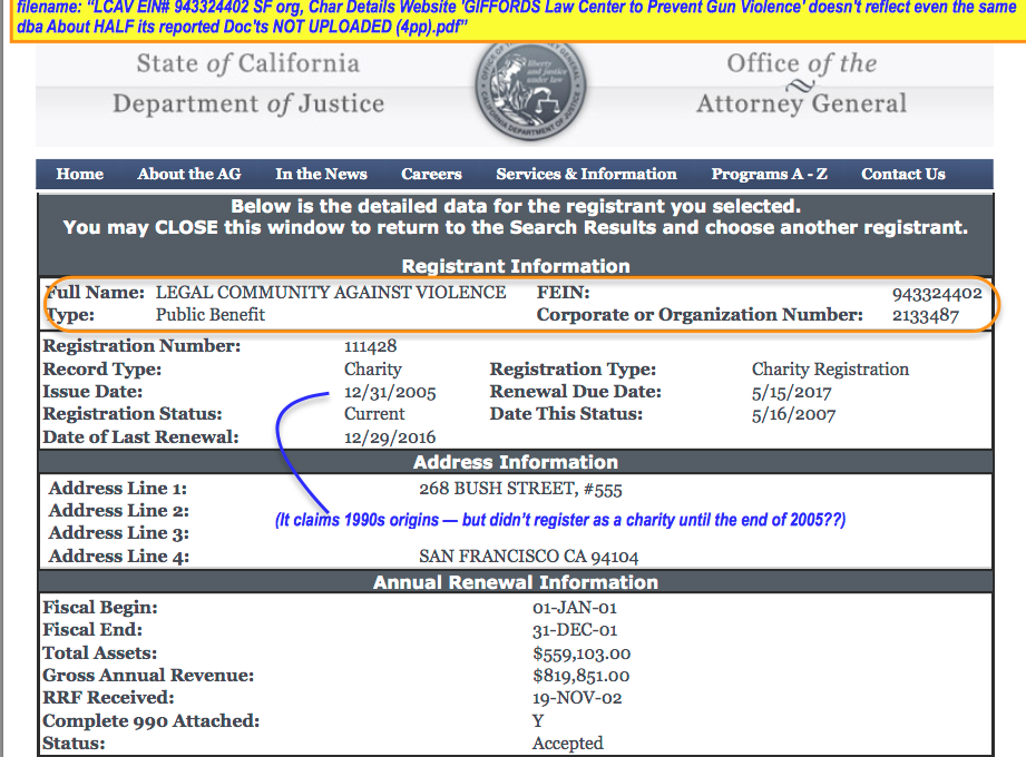 LCAV Charitable Details (top only) viewed Nov 4 2017. Click IMAGE to enlarge or HERE to upload all 4 annotated pages (extra click on page icon may be needed)