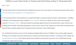 Funds to University Centers (esp. university-wide projects such as Harvard’s IQSS (started about 2005) or MIT’s J-PAL (started 2002) or Princeton’s “Center for Behavioral Science and Public Policy” (started 2015) (that name’s incomplete only because I left out the standard famous-namesake dyad attached to it as often goes with: centers, schools, and/or professorships. I left off the full representation of “J-PAL” also. Go read that post!). Columbia seems to have plenty of named centers over the years, but I found yet another while poking around some of the larger foundations collaborating to find social science behavioral interventions to stop poverty. Columbia’s CPSP was inaugurated, I see, in 2015, is directed by two men — one, Irwin Garfinkel, the other maybe half his age (and probably a mentoring relationship would exist), Christopher Wimer, who’s C.V. is nowhere to be found, but apparently presented a doctoral thesis at Harvard in 2007-2008 (School of Sociology). Re-working the Fragile Families Study seems to be a favorite theme and connections with Robin Hood and Russell Sage Foundations come up in association with young Wimer’s name.