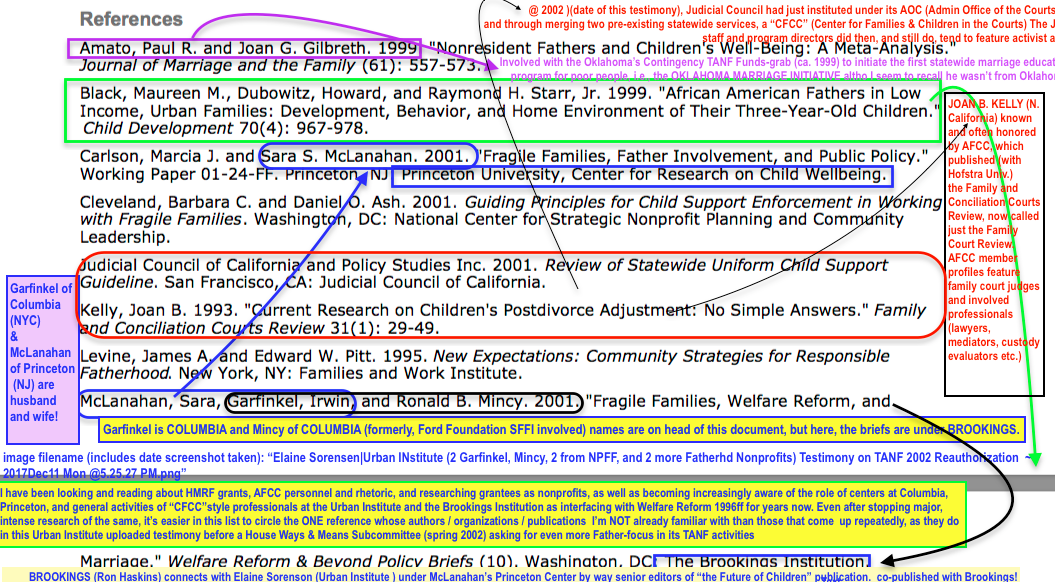 2002 Elaine Sorensen FFI testimony before House Ways & Means subcommittee on TANF Reauthorization, found at the Urban Institute (#3 of 3 images, some References “Fatherhood Promoters Family Genealogy” Tree annotations)