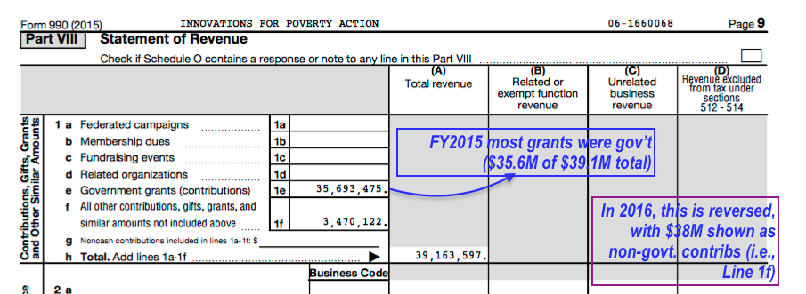 The Money Maze: Following Multi-State, Multi-Candidate PACs + Super-PACs through Rapid Formation and NameChanges. (Giffords, ARS PAC + Lawyer Steve ‘Hurricane’ Mostyn (1971-Nov. 2017)). » IPA (EIN#06-1660068, Innovatns4PovertyActn) FY2015 Pt VIII Revs showing 35’6M Govt grants (Ln1e) out of 39M total {SShot 2017Dec5 @7.25PM