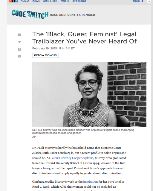 NPR article on Pauli Murray, linked to by 7/1/2015 Jacobin Magazine article “Moynihan’s Anti-Feminism” by Daniel Geary (Dublin Univ Prof. of US History), from his recent book published by Univ. of Pennsylvania.
