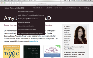 - a quick look at Stablepaths.com website (I looked at EVERY page just now) shows similar appearance and “feel” to TransitioningFamilies.com (though a different color scheme) and that it’s a shameless promotion of not just AFCC agenda (the usual..) but under “Resources” link (<==) also many books by Amy L. Baker (who managed to make a career around preaching parental alienation and, as a result, is popular with fathers’ rights groups, including one that changed its name from “Fathers and Families” (as I recall) to “NPO” – National Parents Organization). So, given that StablePaths.com is essentially, AFCC-drenched, and promoting Amy J.L. Baker books, it’s a reasonable inference that AFCC is itself rather into fathers’ rights also, regardless of the gender of professionals promoting it….