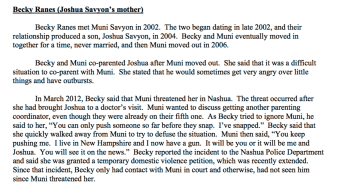 And #3, the later (Nov. 07 2011 by url) DOJ.NH.Gov investigation: “Final Report of the August 11, 2013, Murder of Joshua Savyon and Suicide of Muni Savyon in Manchester, New Hampshire (next three images, the third is annotated and a bit larger):