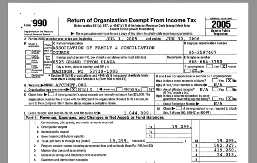 | Association of Family and Conciliation Courts | WI | 2016 | 990 | 33 | $3,731,286.00 | 95-2597407 |
