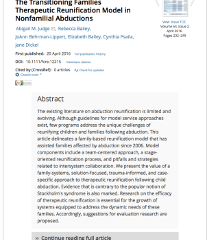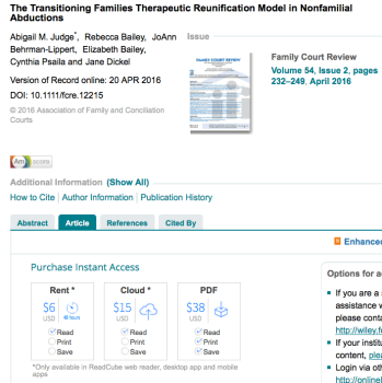 A Family Court Review article (an AFCC publication) comes up in TransitioningFamilies.com, and looking it up, I noticed its lead author was Abigail M. Judge.