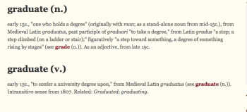 link: from Online Etymology Dict. The school graduates the students, and not vice versa!