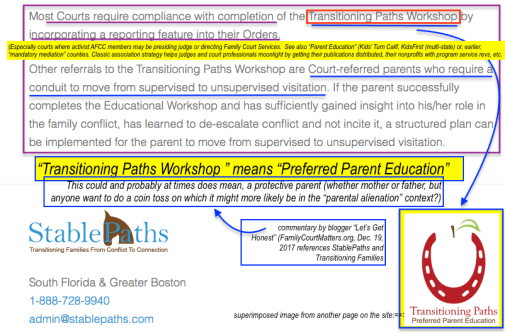 Notice the repeated references to the Family Court Review article, and to “Stablepaths.com” which I’d already deduced was somehow connected with Transitioning Families.