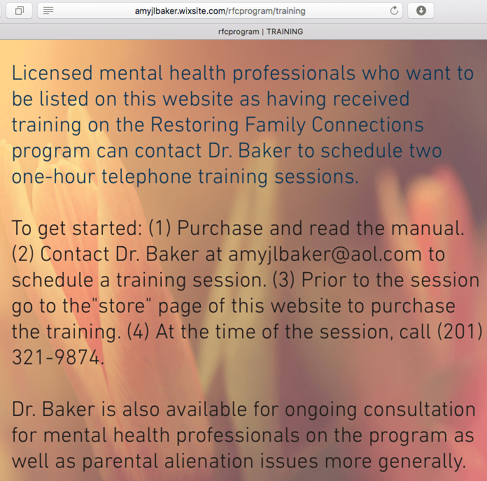 Revisiting Reunification Camps: The Nice Clinical Psychologists involved Just Want to Help Traumatized Kids and “Families in Transition” (or “Transitioning Families”), in “protected spaces” (away from naysayers, critics, and potential negative witnesses) … It’s the Good Ole, Time-Tested, Court-Ordered and of course (™)’d Way [Publ. Dec. 21, 2017]. » Amy JL Baker PhD~personal + RestoringFamilyConnectns (wix) websites =Imaged 2017Dec20 Wed @3.00.40 PM