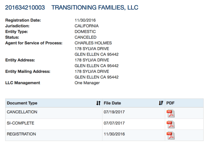 Revisiting Reunification Camps: The Nice Clinical Psychologists involved Just Want to Help Traumatized Kids and “Families in Transition” (or “Transitioning Families”), in “protected spaces” (away from naysayers, critics, and potential negative witnesses) … It’s the Good Ole, Time-Tested, Court-Ordered and of course (™)’d Way [Publ. Dec. 21, 2017]. » TransitioningFamilies LLC (Glen Ellen CA) SOS and address lookups, fire news (6 images) =Imaged 2017Dec20 Wed @8.21.29 PM