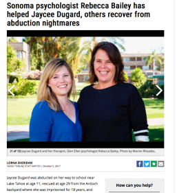 I saw some more issues to bring to our attention after reading a 2017 article from Sonoma News on Rebecca Bailey’s involvement with the Jaycee Dugard case (and foundation, which I already knew), with references to Bailey’s involvement as a “go-to-resource” from “NCMEC,” which I hadn’t known, but which apparently introduced this loyal AFCC member and anti-alienation psychologists from the (larger) SF Bay Area to a just-recovered NON-family kidnap victim.