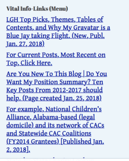Already published, this is an excerpt from my recent Page (not post) on the Nat’l Children’s Alliance. Relates to some recent work on the other pages..