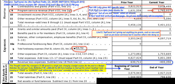 For this section, apart from format cleanup (mostly of the quotes) the only real “update” I’m doing is some more insight into who is the “TapRoot Foundation” as shown through its financials.. Coming up first in the text below….