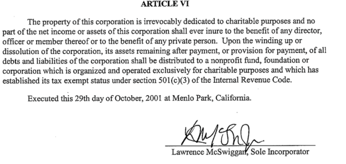 Click to enlarge — notice sole incorporator Lawrence McSwiggan is from Menlo Park (cf. “Silicon Valley”) CA.