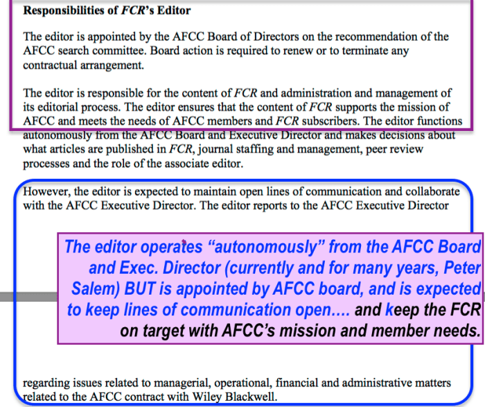 #2 of 3 images: AFCC’s FCR seeking a new Editor (ca 2015) stating loyalty req’mts and other interesting info