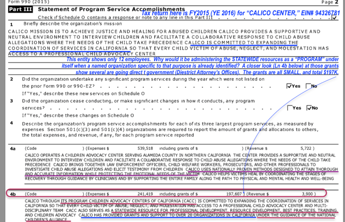Jumping through Hoops and Chasing One’s Tail, that is, if Conceptual Clarity on “CACs” ~~>And Navigating The Money Mazes Set up By Them~~> is the Goal. (This Example: Calico Center (San Leandro, CA) payees). » CALICO CENTER, 1997ff, EIN# 94326781, Fiscal Sponsor (?) of CACC, Inc, FY2015 990 excerpts 2018Jan3 Wed @2.16.29 PM