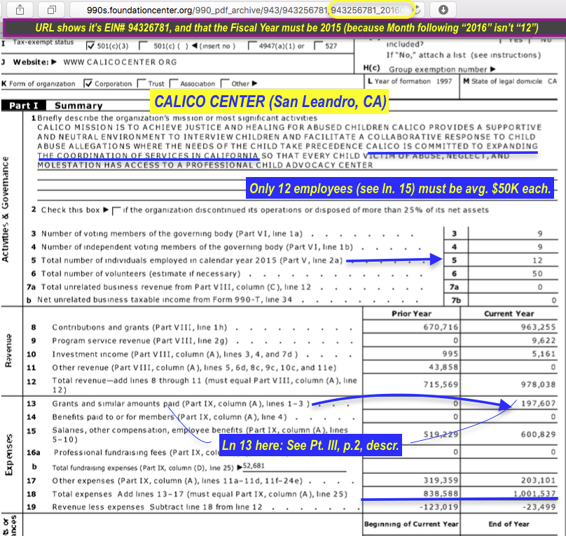 Jumping through Hoops and Chasing One’s Tail, that is, if Conceptual Clarity on “CACs” ~~>And Navigating The Money Mazes Set up By Them~~> is the Goal. (This Example: Calico Center (San Leandro, CA) payees). » CALICO CENTER, 1997ff, EIN# 94326781, Fiscal Sponsor (?) of CACC, Inc, FY2015 990 excerpts 2018Jan3 Wed @2.17.58 PM