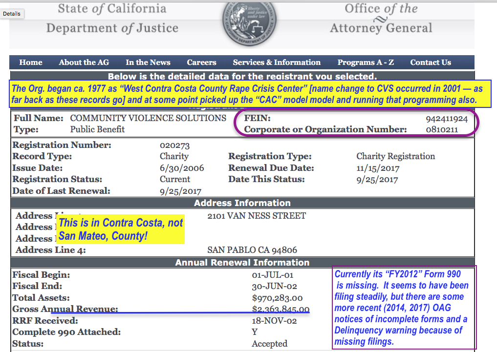Jumping through Hoops and Chasing One’s Tail, that is, if Conceptual Clarity on “CACs” ~~>And Navigating The Money Mazes Set up By Them~~> is the Goal. (This Example: Calico Center (San Leandro, CA) payees). » CVSolutions’org Info from Calif OAG Char Details (Cover page + FY2002 (YEJun30) RRF govt grantees EIN#942411924 SShots2018Jan8 Mon @3.54.28 PM