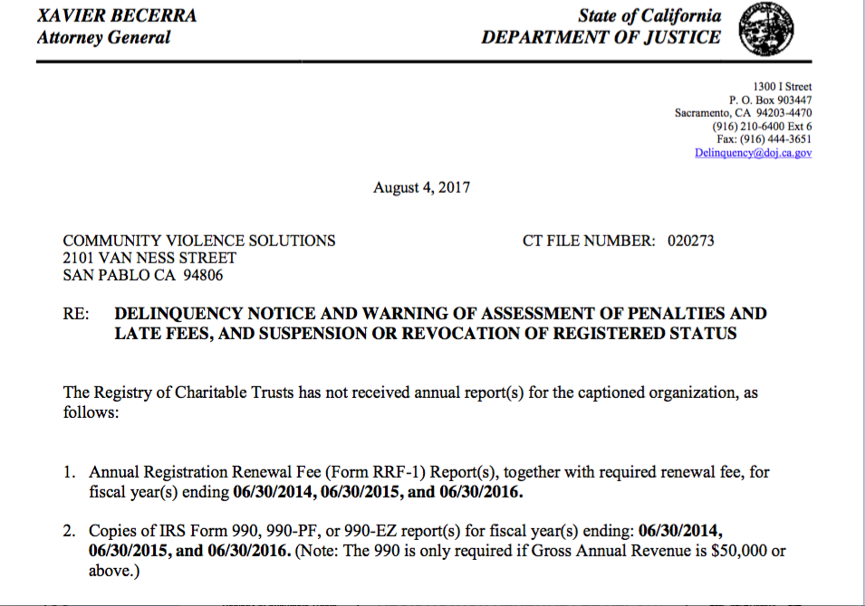 Jumping through Hoops and Chasing One’s Tail, that is, if Conceptual Clarity on “CACs” ~~>And Navigating The Money Mazes Set up By Them~~> is the Goal. (This Example: Calico Center (San Leandro, CA) payees). » CVSolutions’org Info from Calif OAG Char Details | EIN#942411924 2017Aug14 STERN WARNING re Delinquency (2 imgs) SShots2018Jan8 Mon @3.57.01 PM