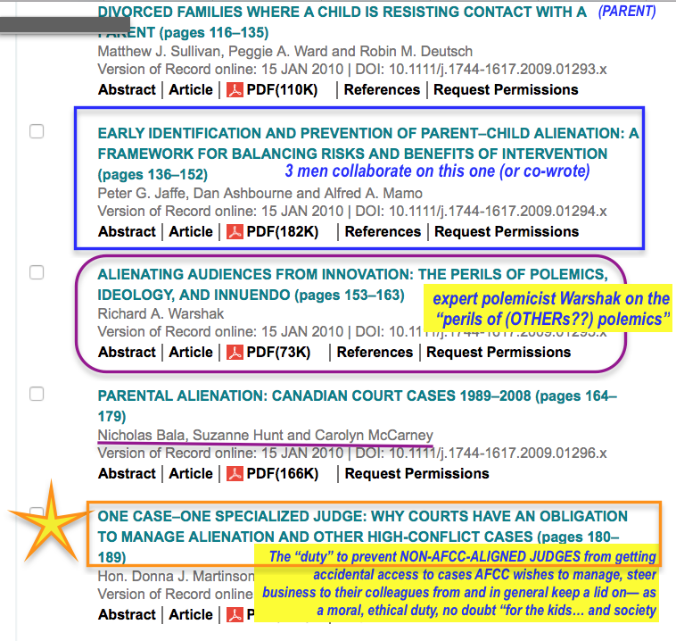 AFCC’s “Family Court Review” Jan. 2010 (Vol. 48 Issue #1), 245pp, as viewed on “onlineWiley.com” #3 of 4 images