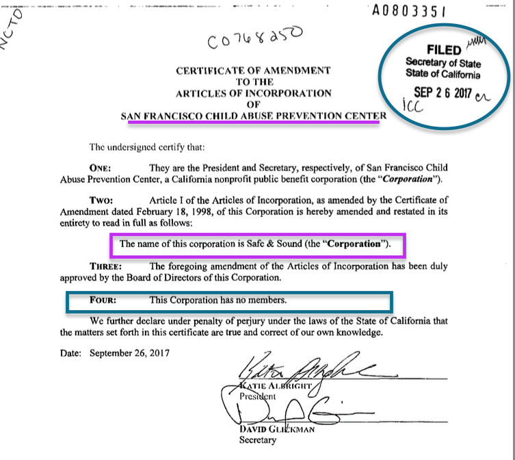 New Page Just Added, ‘Consolidated Control of DV Advocacy… Personal Relevance to a Post-DV-Intervention, Unprosecuted, Child-Stealing Event by Ex-Batterer…” See Excerpt + Access Full Page Here. » NAME CHANGE- SF CAPC ~~> Safe & Sound (the Corporation) stamped at Calif SOS, *** Sept 26 2017** ~ 2017-12-31 at 3.55PM