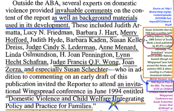 The Missing Link, Barely Buried on PAS.FamiliesChange.CA.gov (‘Resource|Publications|Books’), and where ‘CA,’ nominally, MAYBE still stands for California, but … » Aug 1994 Rept to Pres of the ABA, The Impact of DV on Children (Preface cited to 1994 Wingspread Conference and Susan Schechter) Screen Shot 2018Feb07 at 5.10PM