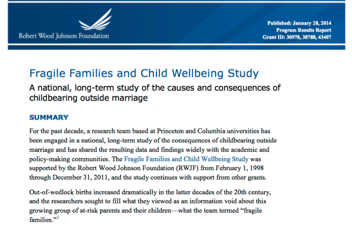 The Missing Link, Barely Buried on PAS.FamiliesChange.CA.gov (‘Resource|Publications|Books’), and where ‘CA,’ nominally, MAYBE still stands for California, but … » RWJF Program Results Rpt Jan 28, 2014 (3 grants, Fragile Families Study) –SShot 2018Feb7 Wed @7.02.00 PM