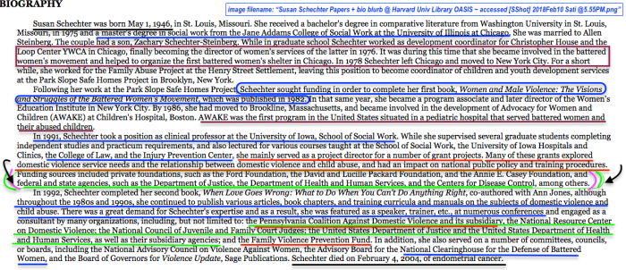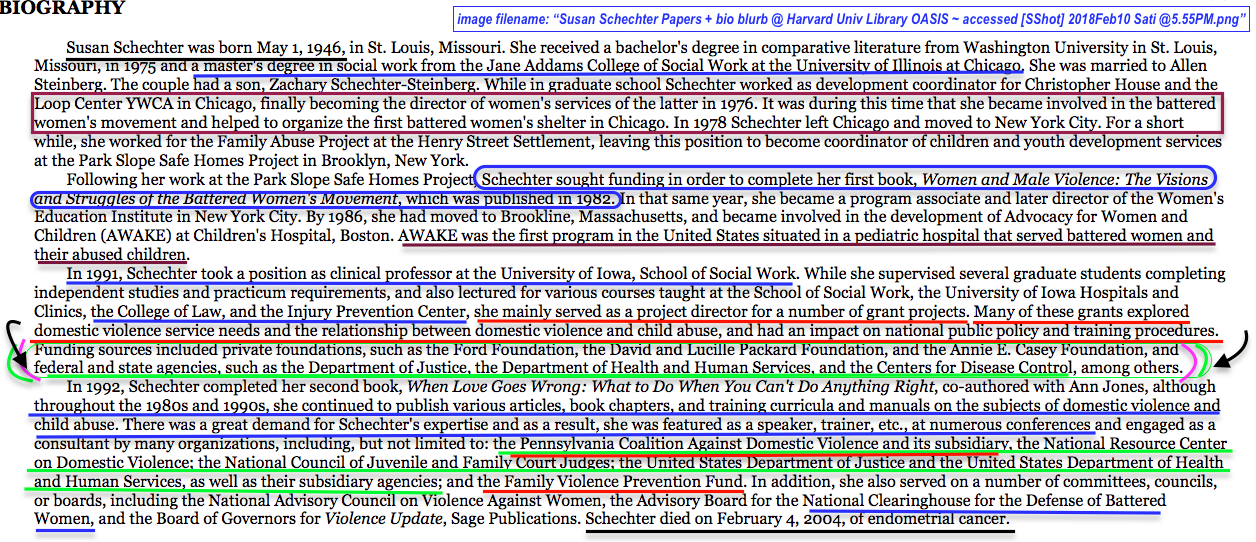 Susan Schechter Papers from Harvard U OASIS (bio blurb only). She was active for decades and influential in the whole movement. Click image to enlarge image only. For a cleaner (un-annotated) view click here. Nearby image has full title of the papers.