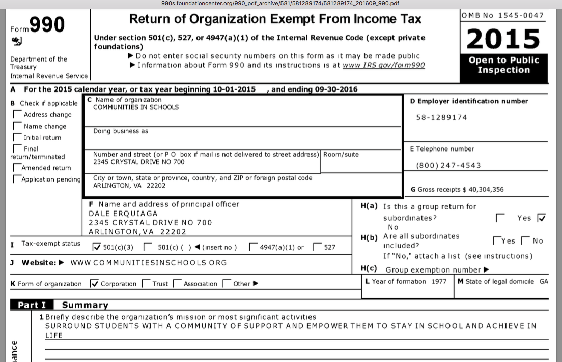 Communities In Schools Model (When You Hear This Rhetoric, Go Find Those Tax Returns!) From Oct. 17, 2016: Feb 2018 Intro on Continuing Relevance of Awareness of CIS and Related Models [Publ. Feb. 23, 2018]. » 00018 CIS EIN#581289174, FY2015 (YE Sep2016, LegalDom Georgia?) DRILL-DOWN (Post Details)<~~ 2018Feb19 Mon @2.18.53 PM