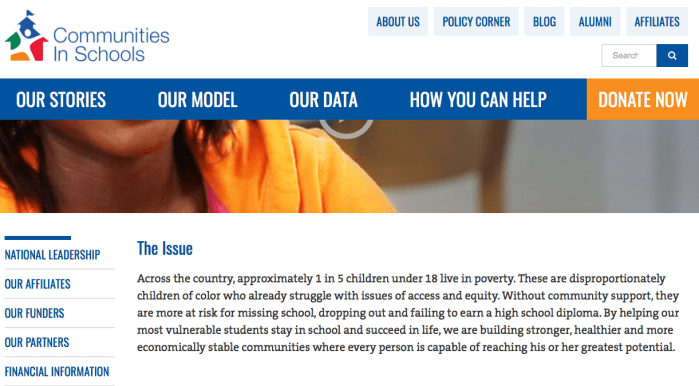 Communities In Schools Model (When You Hear This Rhetoric, Go Find Those Tax Returns!) From Oct. 17, 2016: Feb 2018 Intro on Continuing Relevance of Awareness of CIS and Related Models [Publ. Feb. 23, 2018]. » CIS Nat’l webshots <~2018Feb23 Fri @2.01.24 PM