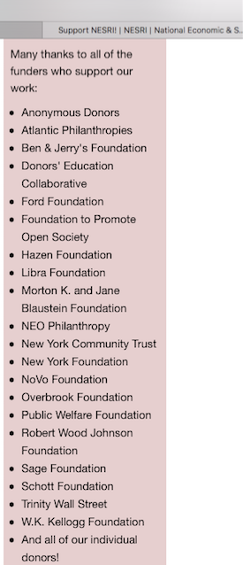 Close-up of Our Funders list from “NESRI” website — none are links to any further detail or validation. The purpose is to just appreciate how popular it is, and join in (Donate).