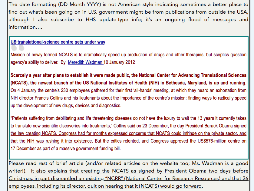From my Oct. 2017 post, “Public Health Service Timeline” esp. after recent 2009 “Tobacco Act” involving the FDA and the NIH interactions, plus NCATS…