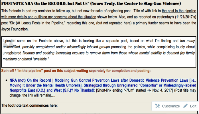 Eight Posts from November, 2017 (Informal TOC Update@ March 9, 2018) [Short-link ends ‘-8KE’]. » Footnote NRA ON THE RECORD (but not Us) (Yours Truly the Center to Stop Gun Violence) (4 images from my Nov 2017 Footnote to HIAP post <~2018Mar8 Thu@4.18.07 PM 00001